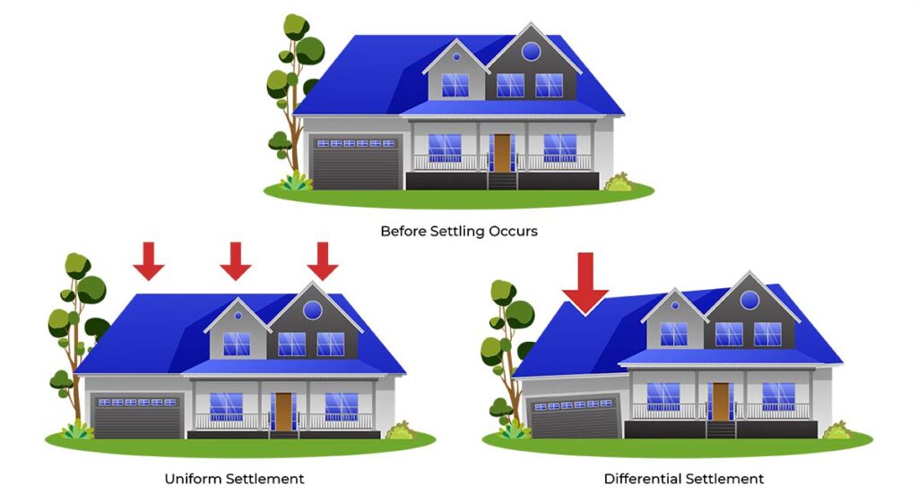 Imbalanced soil conditions are not the only thing that can cause foundation issues. A foundation can settle and become uneven from any of the following:
