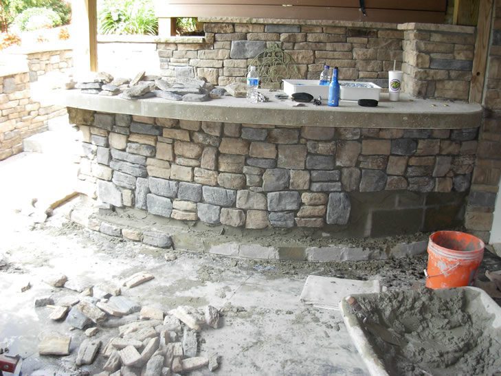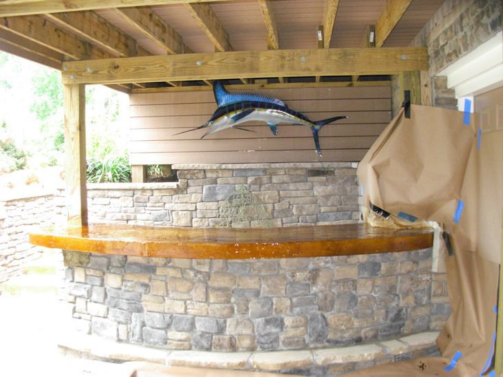 The customer contracted Southside Masonry to construct a stone and cement top patio bar. The concrete top was covered with a dye staining compound giving it a rustic textured finish. The finished product results in a classy entertainment area for the customer’s guests.